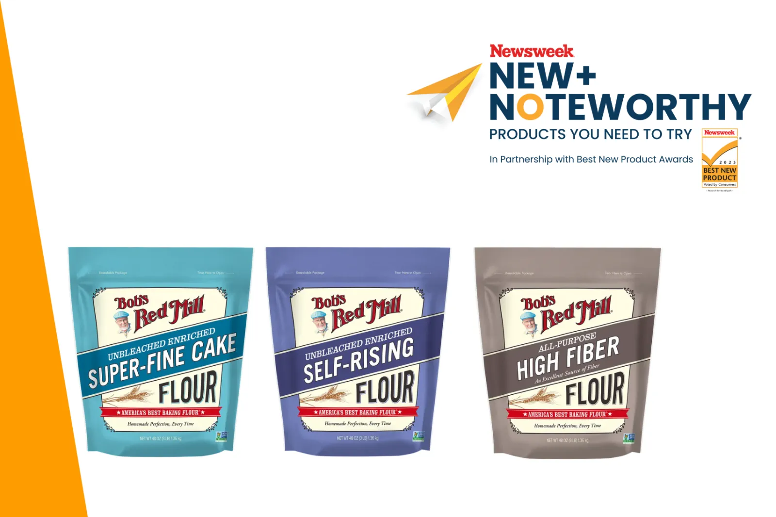 ...Bob's Red Mill has launched three specialty baking flours: Super-Fine Cake Flour, for a tender crumb in cakes, cupcakes, shortcakes, sugar cookies and muffins; Self-Rising Flour, for light-as-air biscuits, pancakes, quick breads, drop dumplings, and more; and High Fiber Flour, a cup-for-cup replacement for all-purpose flour with five times the fiber of traditional all-purpose flour, at a hearty 6 grams per serving. The flours aim to elevate the baking experience to deliver better homemade baked goods.