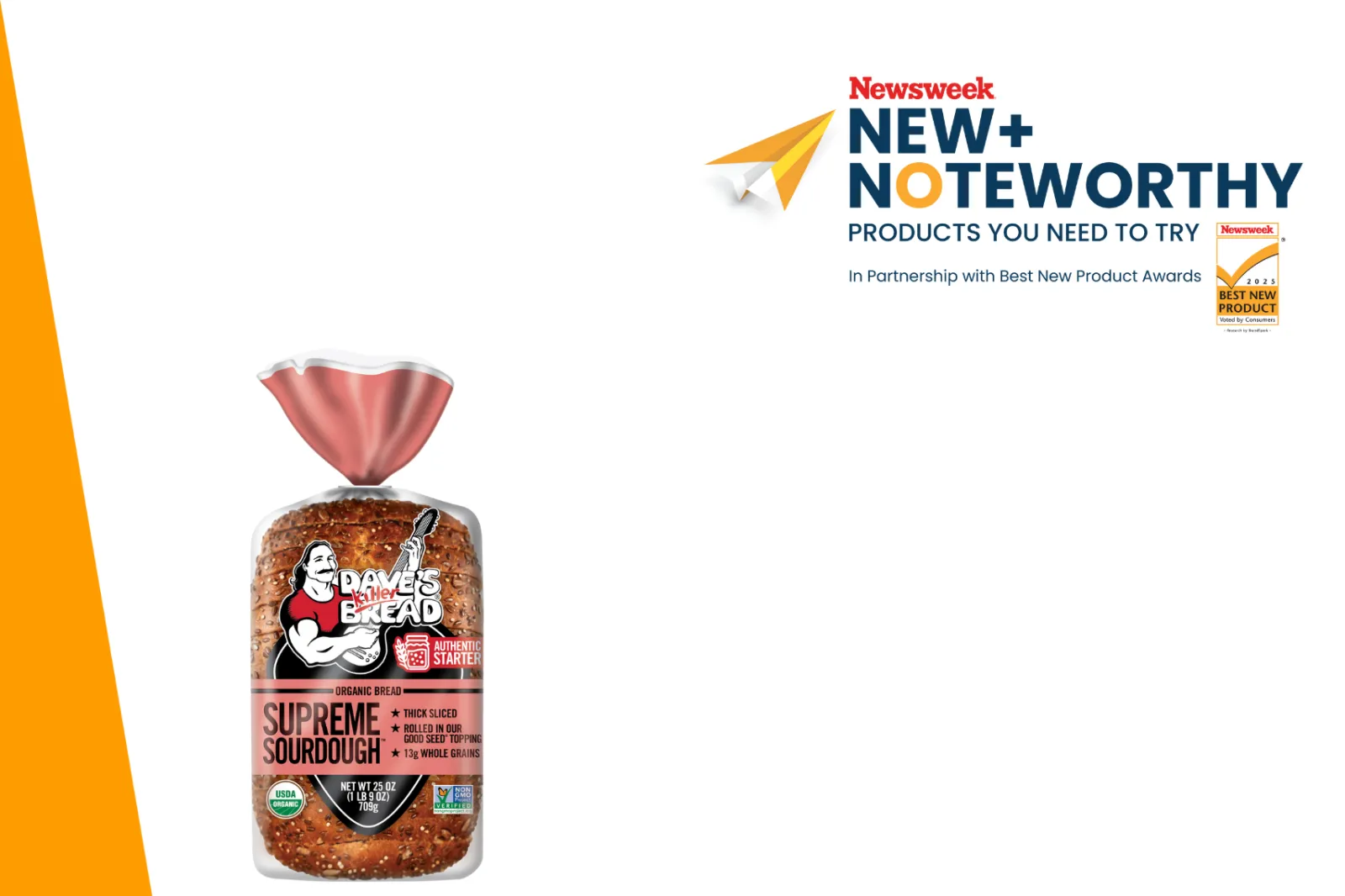 ...Dave’s Killer Bread has launched its new Supreme Sourdough loaf. Made with an authentic starter, rolled in the brand's signature Good Seed topping and sliced thick, Dave’s Killer Bread Supreme Sourdough delivers on the flavor and texture of sourdough bread done the DKB way. Like all DKB products, Supreme Sourdough is certified USDA organic and Non-GMO Project Verified. Now available at participating retailers on the West Coast.