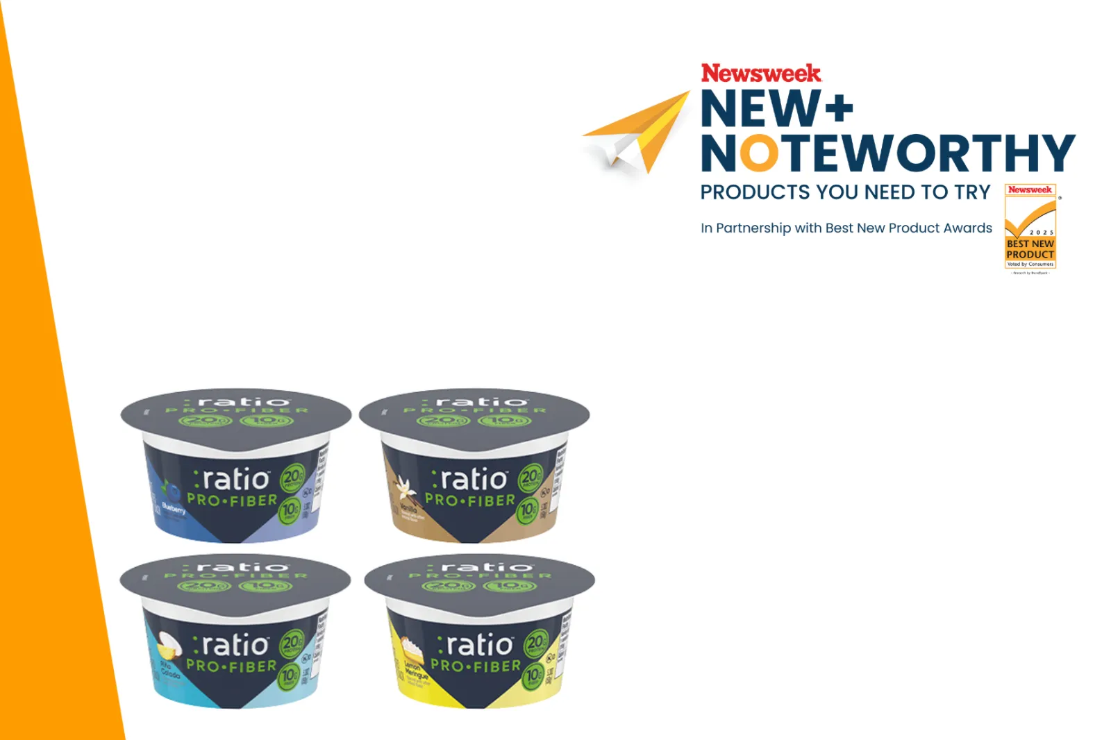 ...:ratio Pro-Fiber is giving the yogurt aisle a first-of-its kind functional dairy snack formulated to deliver a GLP-1-friendly option – 20 grams of protein, 10 grams of fiber and zero grams of added sugar. Available in classic Vanilla, vibrant Blueberry, dessert-inspired Lemon Meringue and tropical Piña Colada.